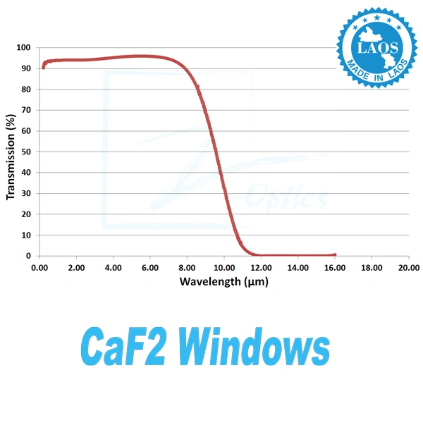 Calcium Fluoride (CaF2) Windows have a high damage threshold and low absorption and are transparent from 180 nm to 8µm. It is a great choice for FTIR analysis, excimer laser systems, spectroscopic windows, and thermal imaging systems.